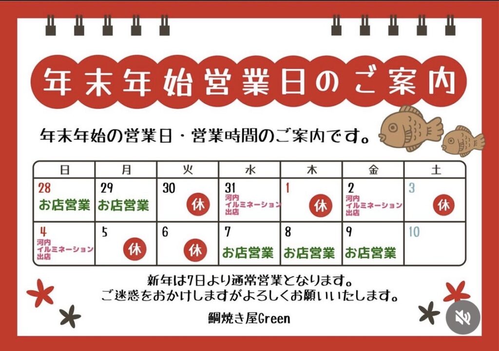 年末年始の営業のお知らせ